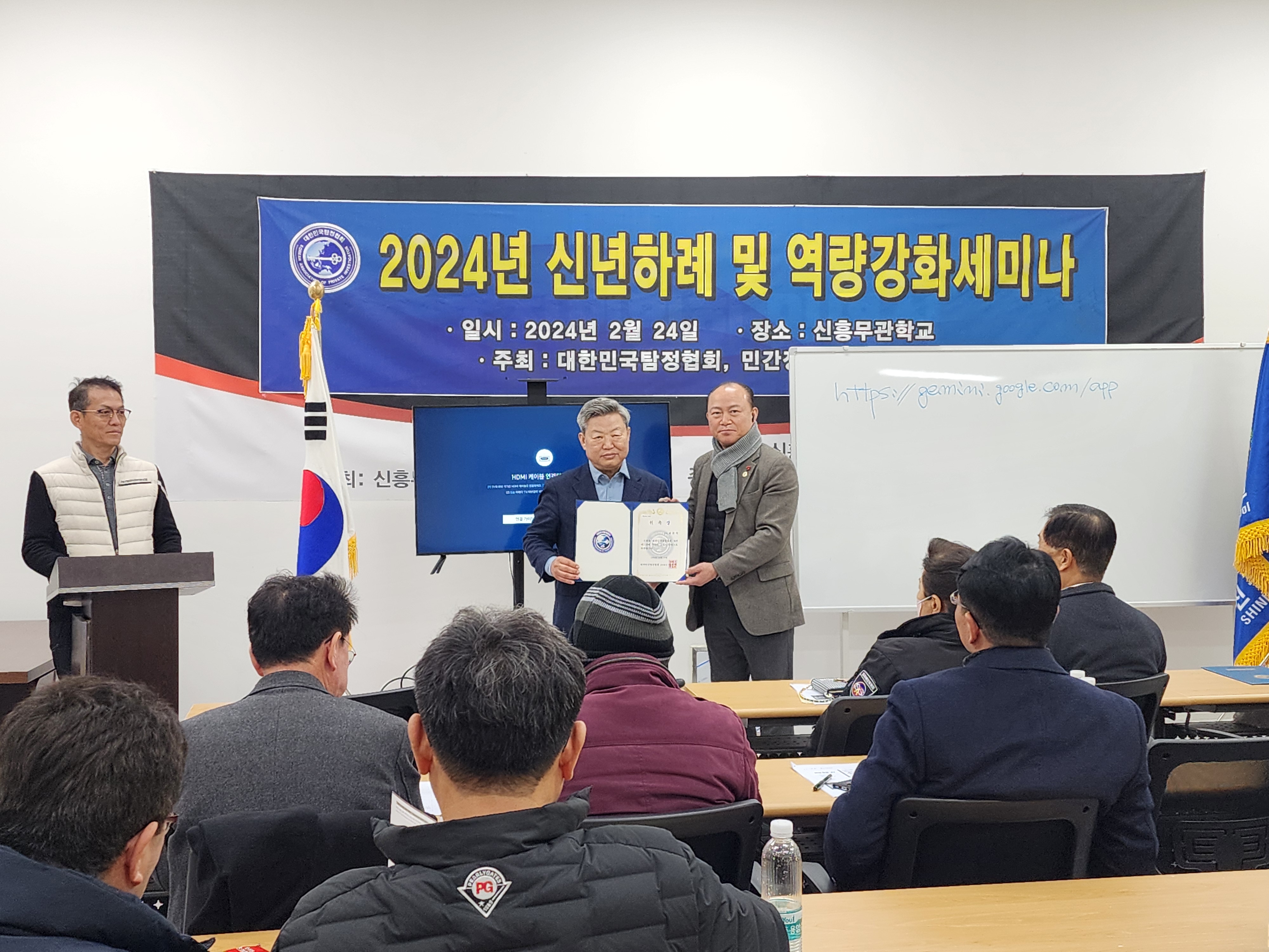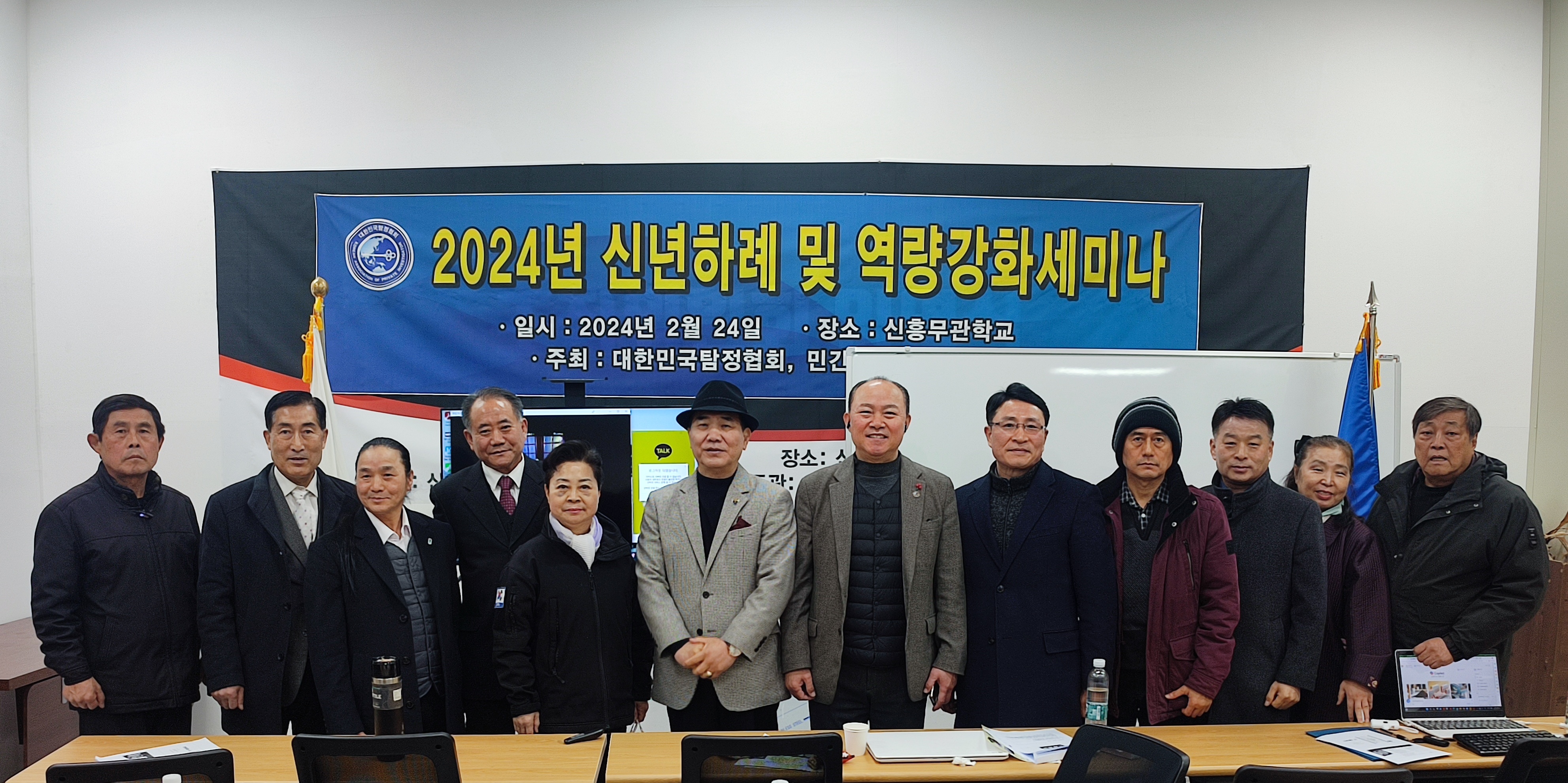 '국민과 함께 하는 정의로운 탐정'을 지향하는 대한민국탐정협회(대탐협)와 민간정보아카데미(민정아)는 24일 남산 신흥무관학교 강의실에서 '2024년 신년하례 및 역량강화세미나'를 성황리 개최하였다.